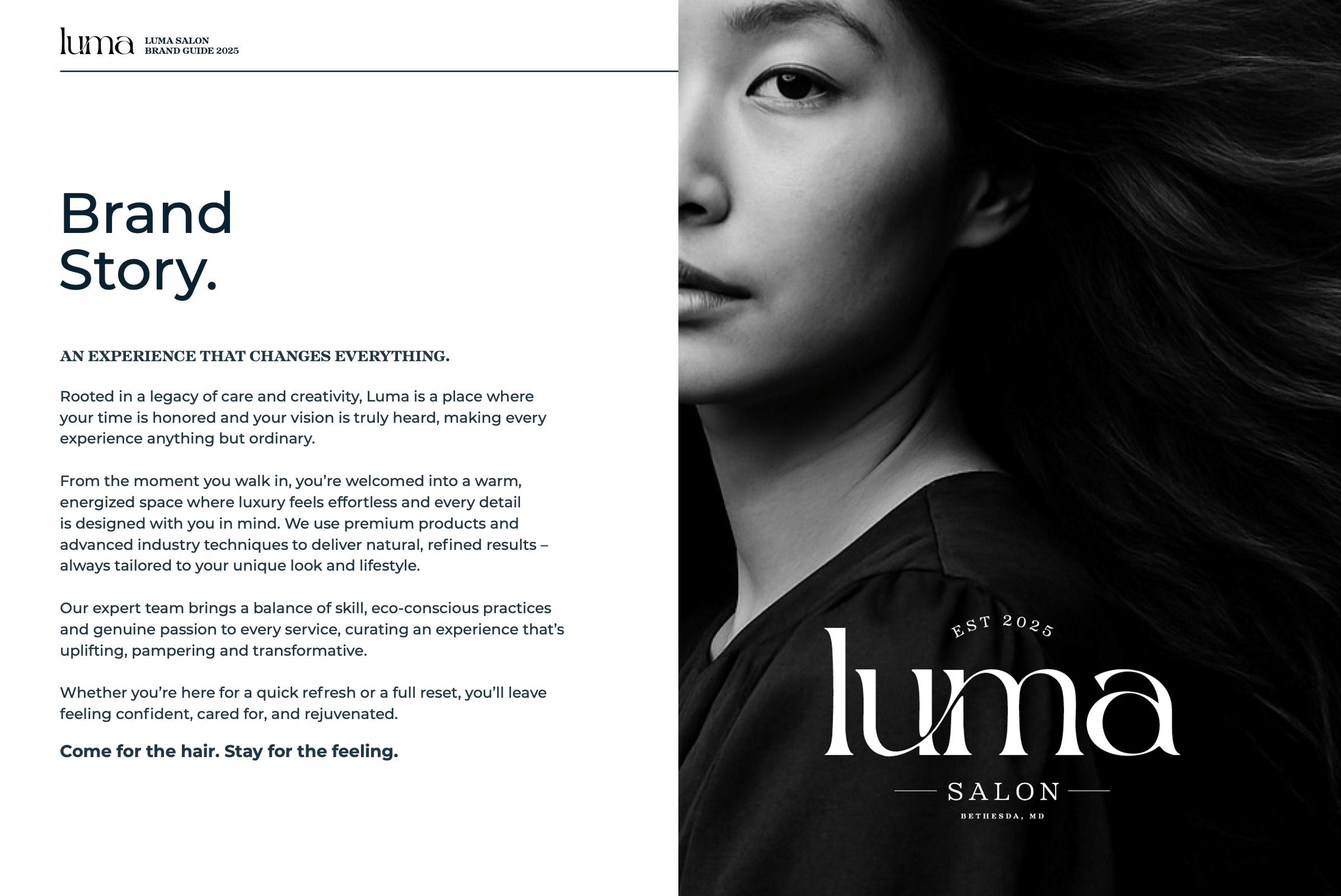 Our team partnered with the founder of Luma Salon to build a luxury brand from the ground up. We developed the full story: brand strategy, visual identity, tagline, and every touchpoint in between.